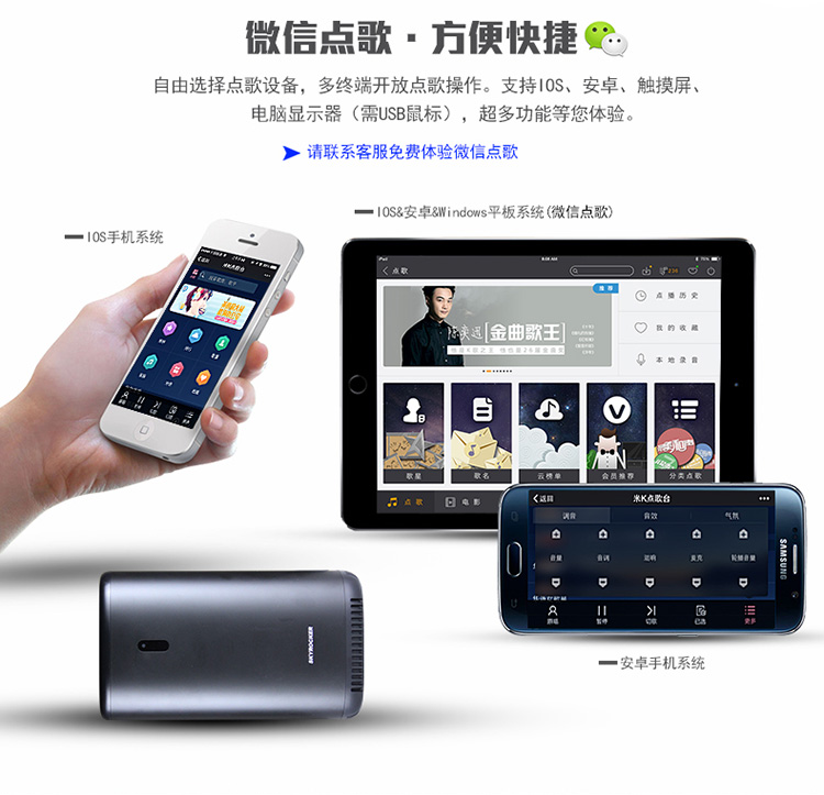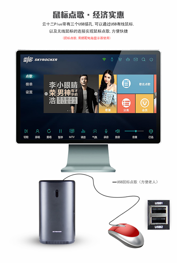 >> 支持觸摸屏、手機、APP鼠標(biāo)多種點歌,適應(yīng)各類人群和場合